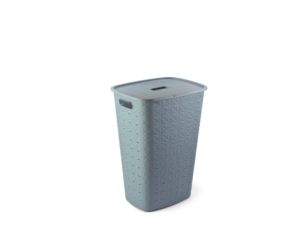 Tento stylový a praktický koš na prádlo se vyrábí ze 70% recyklovaného plastu. Je tedy šetrnější k životnímu prostředí. Zdobí ho jemná textura v podobě trojúhelníků a čtverců, která připomíná prošívanou tkaninu. Doplní vybavení každé domácnosti.