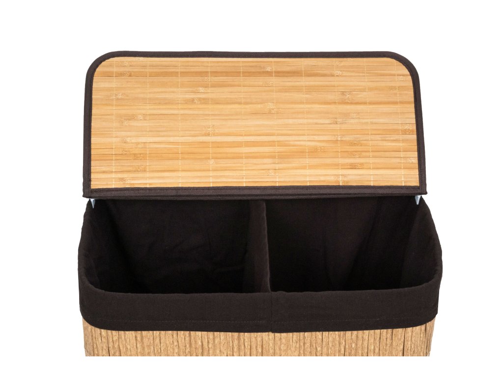 Koš na prádlo G21 z PE ratanu s pevným víkem má pratelnou látkovou vložku, rozdělenou na dva samostatné oddíly. Špinavé prádlo tak můžete třídit už před praním a umístit zvlášť kousky podle materiálu nebo barvy.