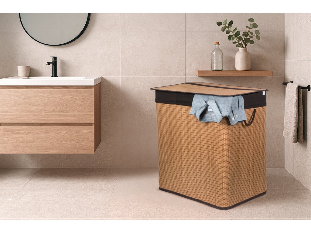 Bambus je překvapivě lehký, takže koš můžete snadno přenášet. Zároveň je ale dostatečně pevný, takže unese i těžkou zátěž, když je naplněn prádlem. Jednou z výborných vlastností bambusového dřeva je navíc jeho velká odolnost vůči vlhkosti. Pokud tedy hledáte prádelní koš, který nepodlehne vlhkému prostředí koupelny, je pro vás bambusový koš na špinavé prádlo s objemem 3 x 50 l jasnou volbou. Jeho další předností je přirozená odolnost vůči bakteriím a plísním, což je u určení koše na špinavé prádlo velmi výhodné.
