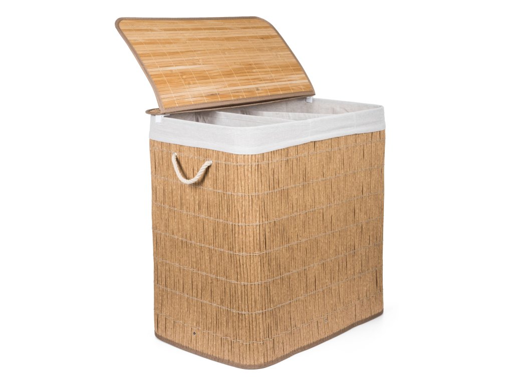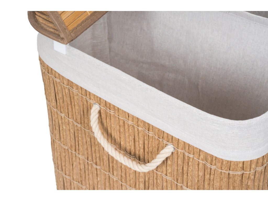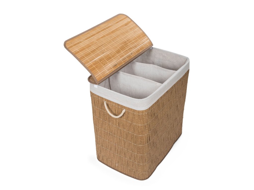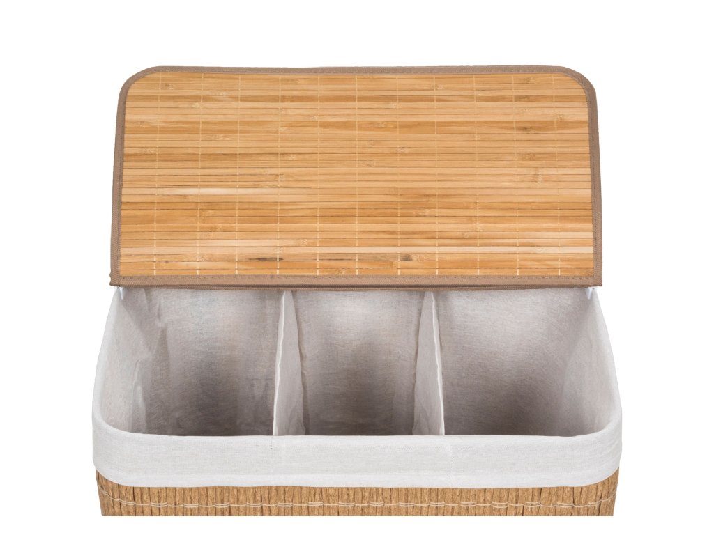 Koš na prádlo G21 z PE ratanu s pevným víkem má pratelnou látkovou vložku, rozdělenou na tři samostatné oddíly. Špinavé prádlo tak můžete třídit už před praním a umístit zvlášť kousky podle materiálu nebo barvy.