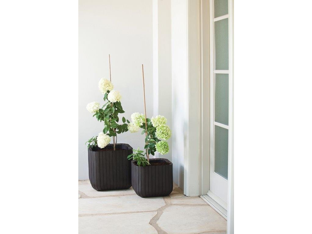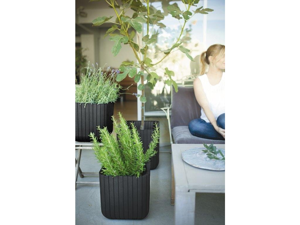 Květináč Keter Cube Planter M v elegantní antracitové barvě zaujme věrnou imitací přírodního dřeva a odolnou konstrukcí z lisovaného plastu. Díky objemu 50,5 litru se hodí pro pěstování větších rostlin na zahradě, terase i balkonu.