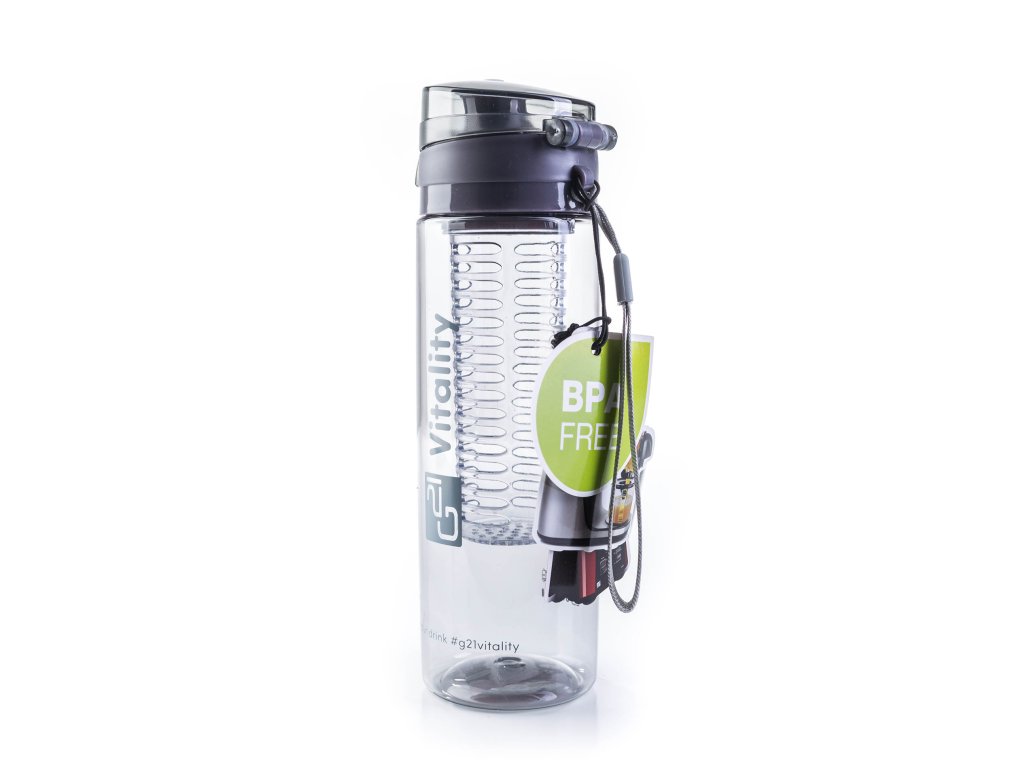 Láhev G21 na smoothie/juice v šedé barvě je vyrobena z odolného a nezávadného tritanu. Má objem 600 ml a je to praktický parťák nejen na doma, ale i do přírody nebo na sport. Navíc obsahuje plastové vkládací sítko na louhování bylinek, kousků ovoce nebo čajů.