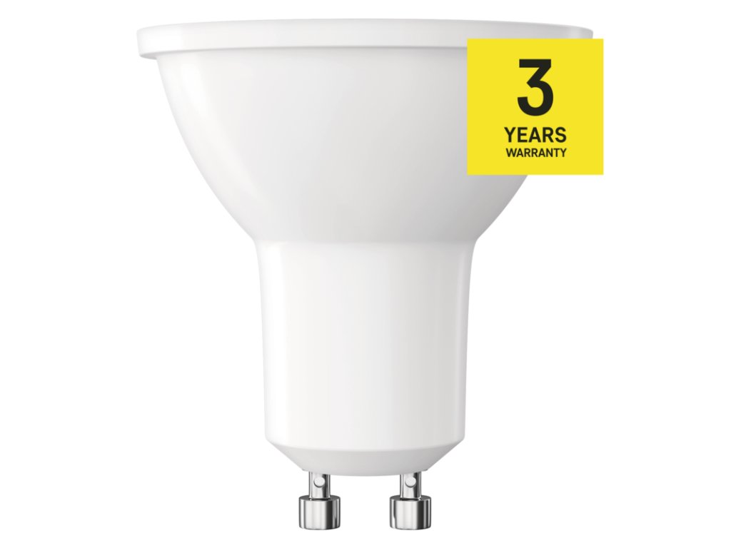 Značka EMOS Objednací číslo ZQ8E23 Produktové číslo 1525730425 EAN 8592920128398 patice (uchycení žárovky) GU10 barva světla neutrální bílá náhrada za žárovku 39 W příkon 4 W světelný tok 450 lm rozměr 50 × 50 × 58 mm řada CLASSIC stmívatelná ne tvar MR16 teplota chromatičnosti 4 000 K úhel vyzařování 100° napětí 230 V~/50 Hz index podání barev (CRI) 80 energetická třída E životnost 30 000 hodin technologie LED počet čipů neuvádí se typ čipů SMD účiník 0,40 počet spínacích cyklů 30 000 světelná účinnost 113 lm/W podporované OS – kompatibilita – protokol – ovládání hlasovými asistenty ne notifikace do mobilní aplikace ne přenosová frekvence – záruční doba 3 roky prodejní obal 1 ks, krabička
