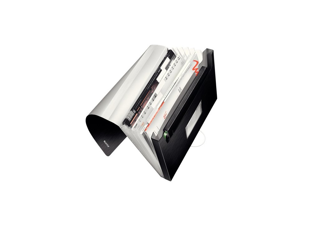 Pro pohodlný přenos a organizaci dokumentů do 6 přihrádek, včetně speciální přihrádky na různé předměty. Vyrobeno z unikátního odolného polypropylenu.V důmyslných barvách řady Leitz Style, povrch v designu broušené oceli.