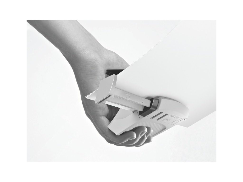 Odolná, praktická sešívačka s ergonomickou rukojetí a v módních barvách pro použití v kanceláři, doma nebo na cestách. Patentovaný úchyt a ostré děrovací segmenty snižují sílu nutnou k děrování. Vhodná pro použití v ruce.