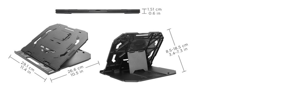 Robustní, neklouzavý stojan umožňuje ergonomicky naklonit notebook a telefon, abyste předešli bolestem a napětí, zatímco větrací otvory zlepšují chladicí výkon notebooku.