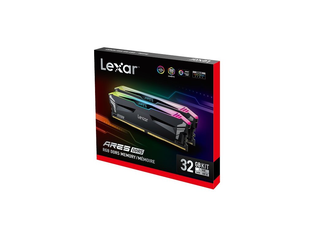 Lexar ARES DDR5 32GB (kit 2x16GB) UDIMM 6400MHz CL32 XMP 3.0 - RGB, Heatsink, černá
