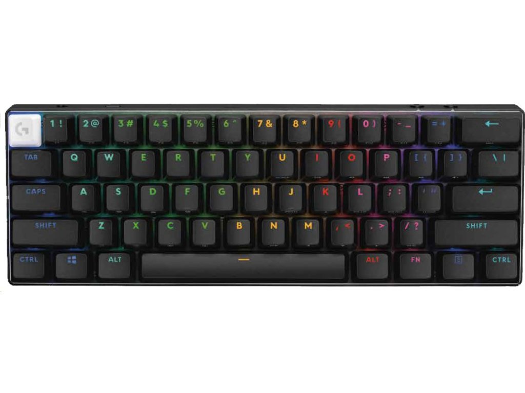 Bezdrátová 60procentní herní klávesnice LIGHTSPEED s KEYCONTROL, LIGHTSYNC RGB a optickými spínači.