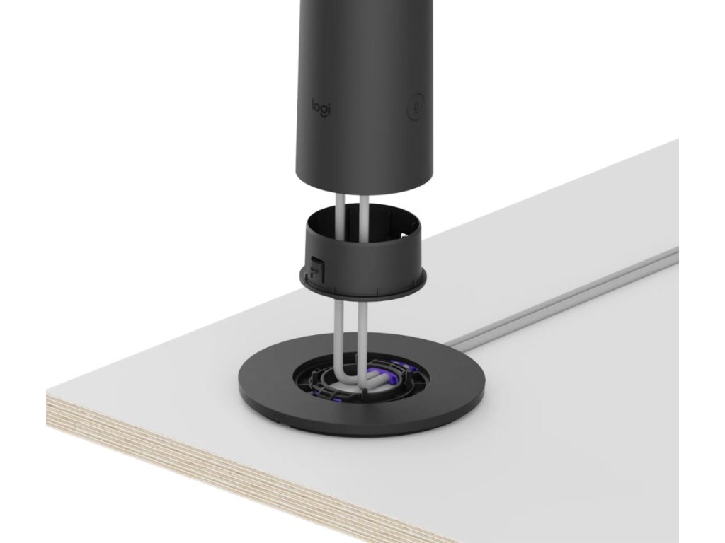 Zajistěte kameru Sight ke stolům a zároveň uložte a skryjte kabely do otvoru průchodky pomocí přiloženého držáku na stůl.