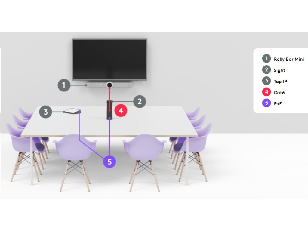 Nový přístup kombinuje kameru Sight na stole s videobarem v přední části místnosti pro zajištění optimálního úhlu interakcí v zasedací místnosti.