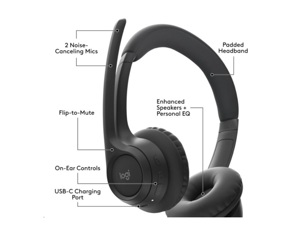 Vylepšené dynamické měniče reproduktorů poskytují čistý zvuk pro hovory a další. Kompatibilní s běžnými aplikacemi pro volání napříč prakticky všemi platformami a operačními systémy prostřednictvím Bluetooth.