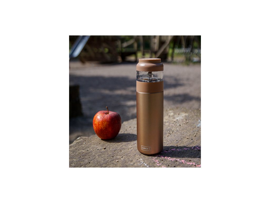 Přenosná termo láhev na čaj značky Lurch je skvělým pomocníkem pro všechny milovníky kvalitních čajů. Láhev s dvojitou stěnou z nerezové oceli zajistí, že si nápoje udrží svou teplotu až po dobu 6 hodin (horké i studené). Praktický úzký tvar láhve je ideální k přenášení v batohu nebo v běžném držáku na nápoje. Výhodou termo láhve je její inovativní patentované víko, jehož jednoduchým otočením oddělíte nebo naopak zpřístupníte vrchní prostor určený pro čaj. Bez problému si tak můžete ohlídat délku louhování čaje a mít dokonalý čaj vždy po ruce, ať už jste kdekoli na cestách.