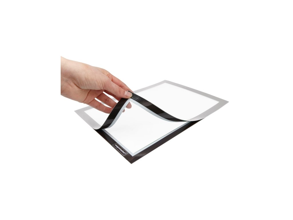 Zvýrazněte dokument, otevírací dobu nebo plakát pomocí samolepícího magnetického rámečku Magnetofix. Díky barevnému rámečku o šířce 9 mm upozorníte na všechny důležité informace. Vložíte do něj papír o velikosti A4 (210 x 297 mm). Je dobře čitelný. Rámeček má totiž matný antireflexní povrch jako klasické průsvitné fólie. Použijete ho v kanceláři, skladu, obchodu, ve výrobním provozu i doma.