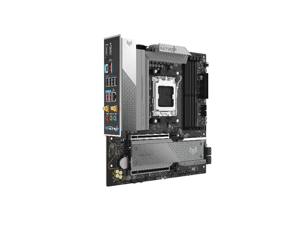 Sapphire NITRO+ B850M WIFI je základní deska formátu Micro-ATX pro procesory AMD Ryzen™ 7000, 8000 a 9000. Nabízí podporu pamětí DDR5 až 8000 MHz (OC), napájecí kaskádu 12+2+1 fází s proudem 55 A na fázi a účinné chlazení VRM, M.2 i PCH.