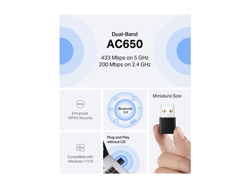 Mercusys MA20NB AC650 Nano WiFi BT USB Adapter
