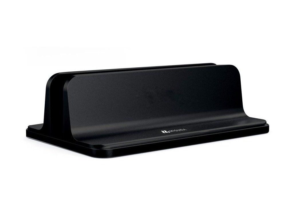 Praktický odkládací stojan pro notebook či tablet pomáhá šetřit místo na pracovním stole. Silikonové vložky ochrání zařízení před vyklouznutím či poškrábáním. Šířku přihrádky lze nastavit v rozsahu 22 až 70 mm. Široká základna s protiskluzovým povrchem zajistí potřebnou stabilitu. Stojan je vyroben z kvalitní hliníkové slitiny a díky elegantnímu designu se hodí do každé kanceláře nebo pracovny.