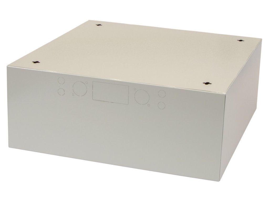 Skříň je vyrobena z pozinkovaného materiálu proti zrezivění, s povrchovou úpravou šedé barvy.