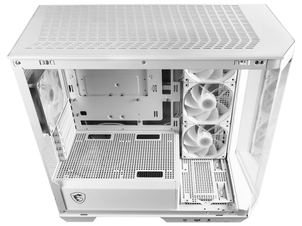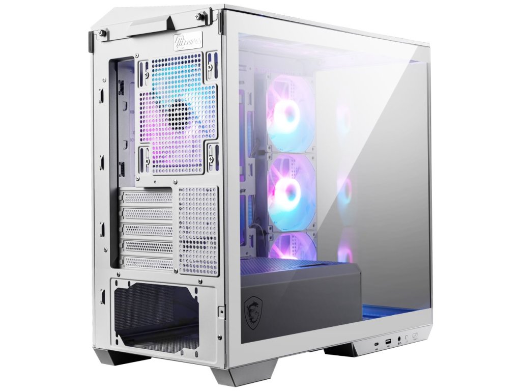 MSI skříň MAG PANO M100R PZ White/ bez zdroje/ levé a přední sklo/ 4x 120 mm A-RGB fan/ 1x USB-C/ 1x USB3.2/ bílá