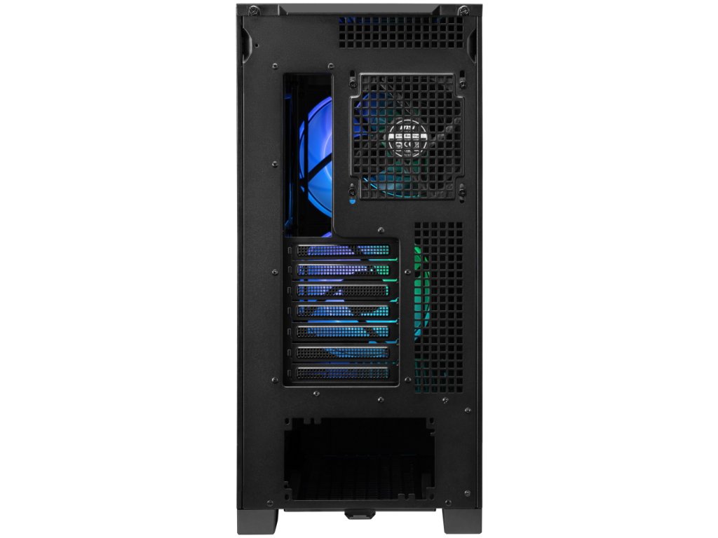 Kvalitní počítačová skříň formátu Middle Tower nabízí 4× 2,5", 1× 3,5" a 1× 2,5"/3,5" volné pozice pro uložení pevných nebo SSD disků. Skříň je vybavena průhlednou bočnicí a předním panelem. Předinstalovány jsou dva 160mm ventilátory s adresovatelným RGB podsvícením a jeden 120mm ventilátor bez podsvícení. Rychlou změnu podsvícení umožňuje tlačítko na horním panelu. Zde se také nachází dva porty USB 3.0, jeden port USB-C a kombinovaný port sluchátek a mikrofonu. Ve skříni je dostatek prostoru pro chladič CPU do výšky až 165 mm a grafickou kartu o délce až 400 mm. Důmyslné řešení umožňuje pohodlné umístění až 360 mm dlouhého výměníku vodního chlazení na přední, horní i boční straně. Potěší také přítomnost odnímatelných prachových filtrů. Skříň je dodávána bez zdroje.