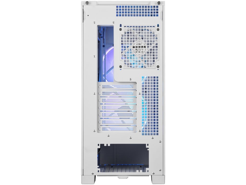 Kvalitní počítačová skříň formátu Middle Tower nabízí 4× 2,5", 1× 3,5" a 1× 2,5"/3,5" volné pozice pro uložení pevných nebo SSD disků. Skříň je vybavena průhlednou bočnicí a předním panelem. Předinstalovány jsou dva 160mm ventilátory s adresovatelným RGB podsvícením a jeden 120mm ventilátor bez podsvícení. Rychlou změnu podsvícení umožňuje tlačítko na horním panelu. Zde se také nachází dva porty USB 3.0, jeden port USB-C a kombinovaný port sluchátek a mikrofonu. Ve skříni je dostatek prostoru pro chladič CPU do výšky až 165 mm a grafickou kartu o délce až 400 mm. Důmyslné řešení umožňuje pohodlné umístění až 360 mm dlouhého výměníku vodního chlazení na přední, horní i boční straně. Potěší také přítomnost odnímatelných prachových filtrů. Skříň je dodávána bez zdroje.