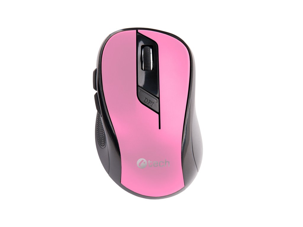 Myš C-TECH WLM-02P, černo-růžová, bezdrátová, 1600DPI, 6 tlačítek, USB nano receiver