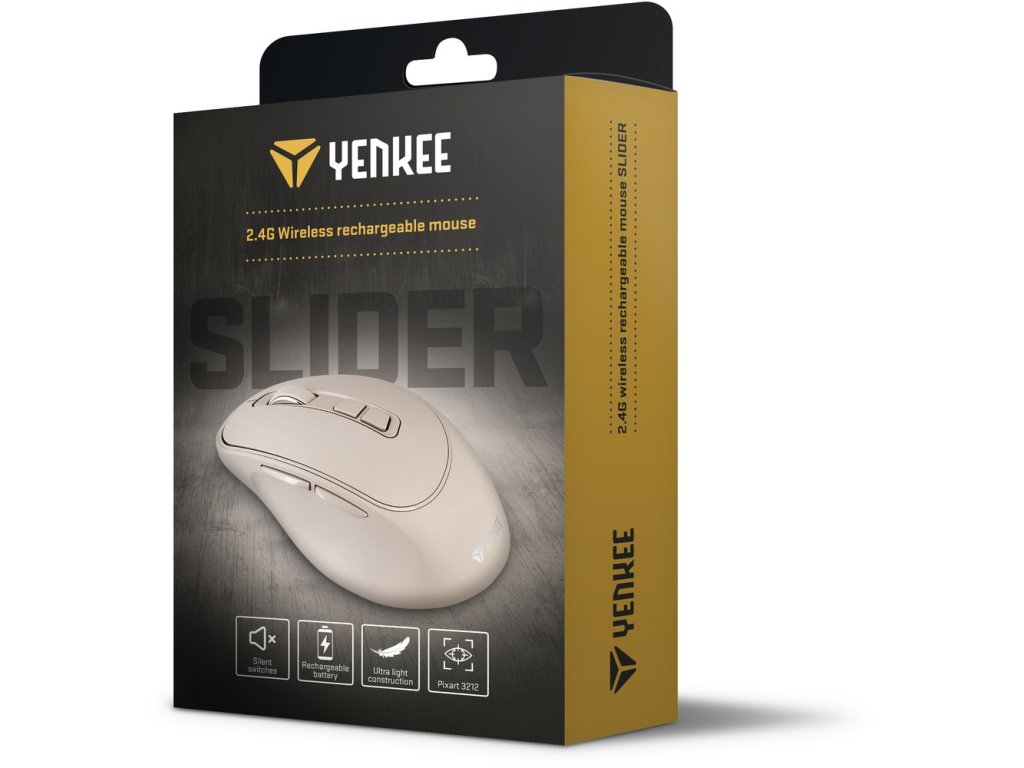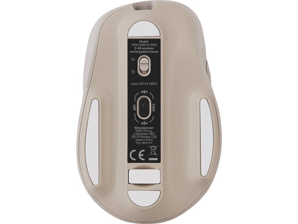 Myš Yenkee YMS 2080BG SLIDER, optická, bezdrátová, dobíjecí, 2400 DPI, béžová