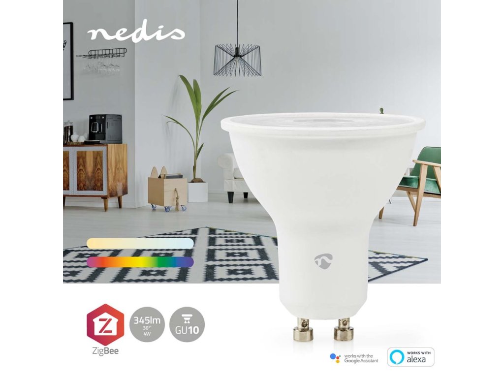 NEDIS chytrá LED žárovka/ Zigbee 3.0/ GU10/ PAR16/ 4,7W/ 230V/ 470lm/ teplá – studená bíla/ 2700–6500K/ RGB/ stmívatelná