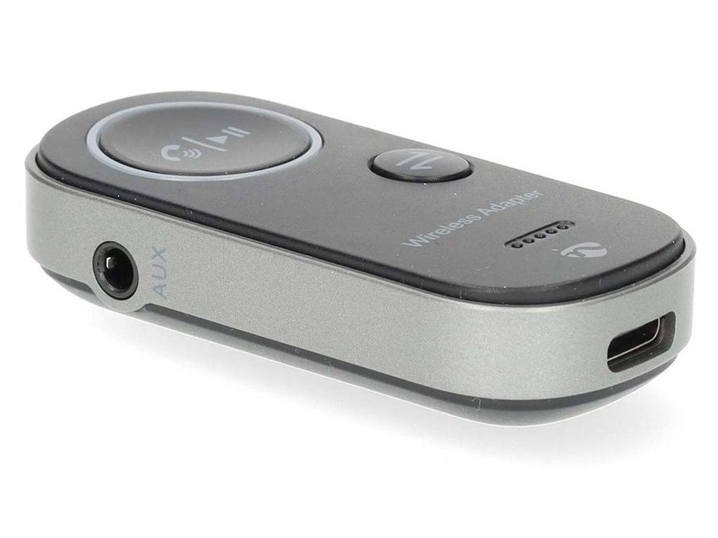 Adaptér je vybaven USB-C konektorem pro napájení a vstup a 3,5mm jack výstupem pro připojení sluchátek nebo reproduktorů. Vestavěná baterie poskytuje až 8,5 hodin nepřetržitého přehrávání.