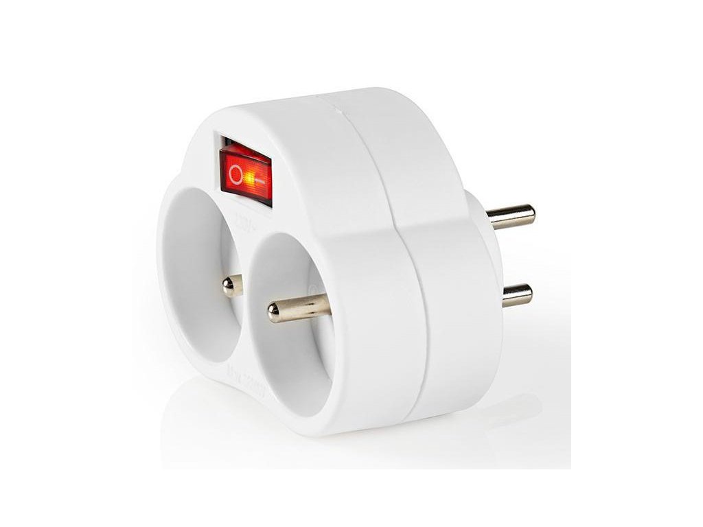 NEDIS síťový rozbočovač/ 2x zásuvka typu E (s kolíkem)/ 250 V AC 50/60 Hz/ 16 A/ 3500 W/ vypínač/ bílý