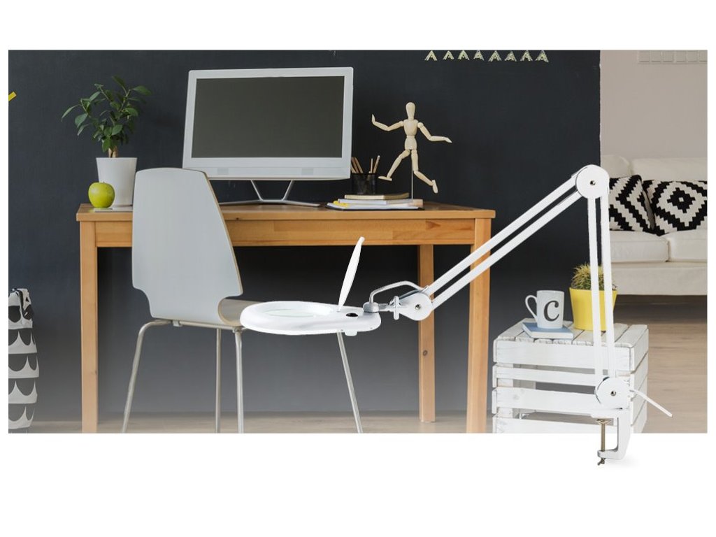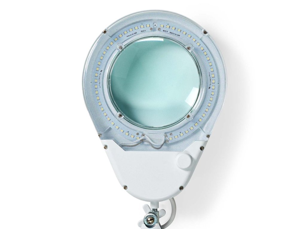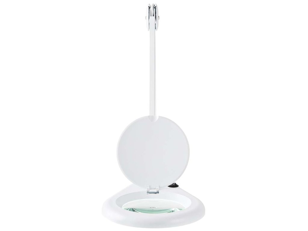 LED lampička s lupou vhodná pro detailní práci s malými díly. Disponuje skleněnou čočkou o průměru 120 mm s 1,75násobným zvětšením (3 dioptrie). Lampu lze upevnit svorkou na desku stolu o tloušťce až 6 centimetrů. Flexibilní rameno o délce 125 cm, nabízející vodorovné otáčení v úhlu 260° a svislé otáčení v úhlu 210°, umožňuje perfektní nastavení osvětlení při práci. Ochranná krytka chrání čočku před nečistotami.
