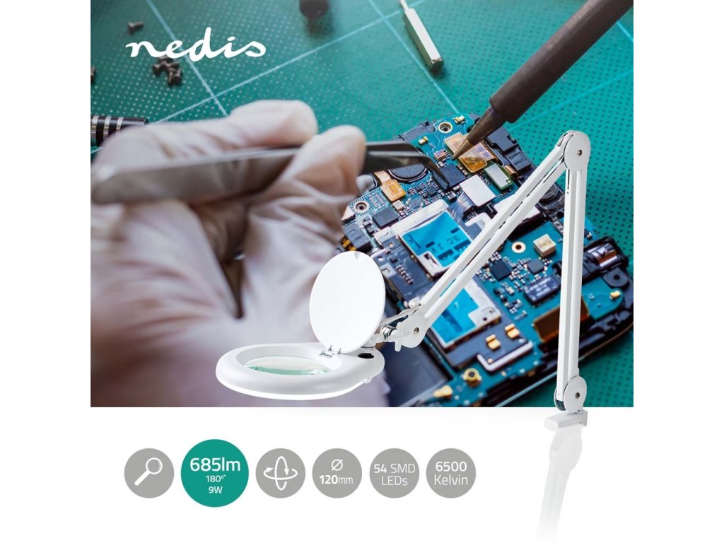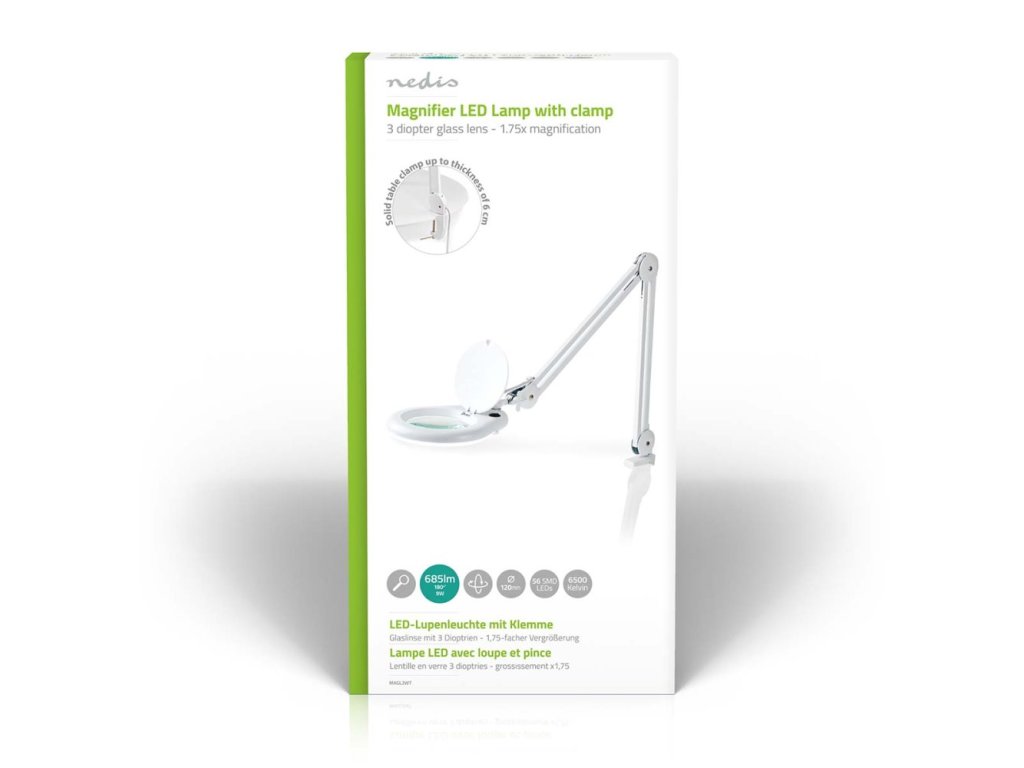 Stolní lampa Nedis MAGLE2WT se zvětšovacím sklem, která je ideální do pracovního prostředí. Uplatní se při motoricky náročných činnostech, které vyžadují preciznost a orientaci na detail – například v kosmetických salonech, hodinářství, opravnách drobných předmětů a všude tam, kde se manipuluje s drobnými součástkami.