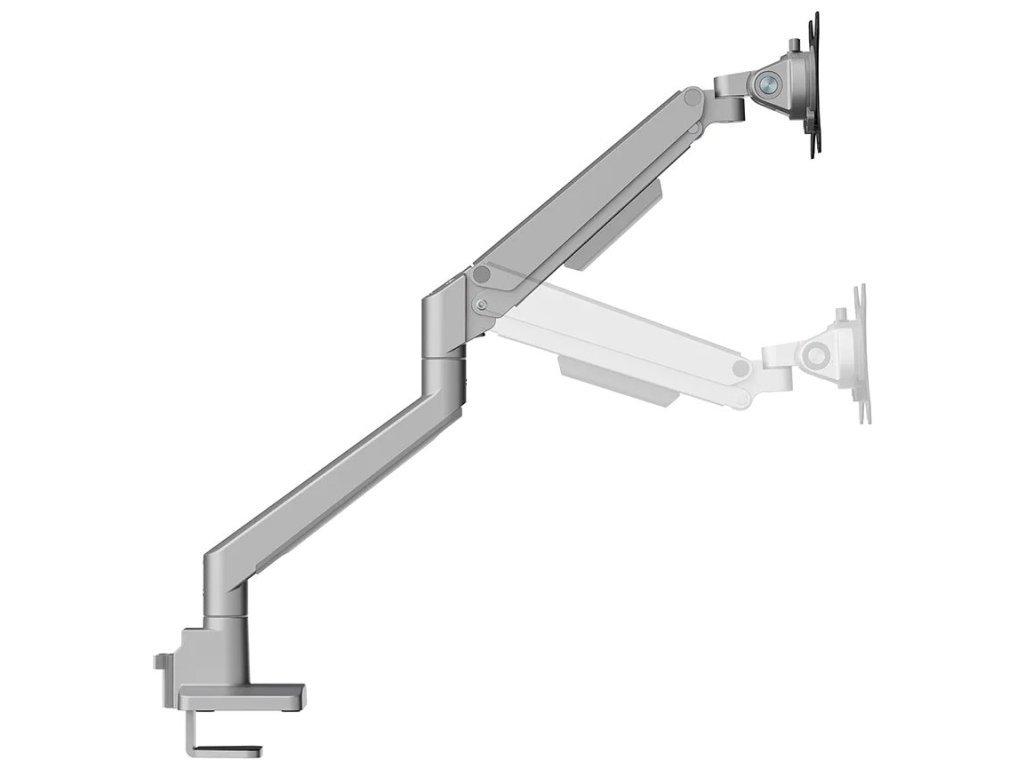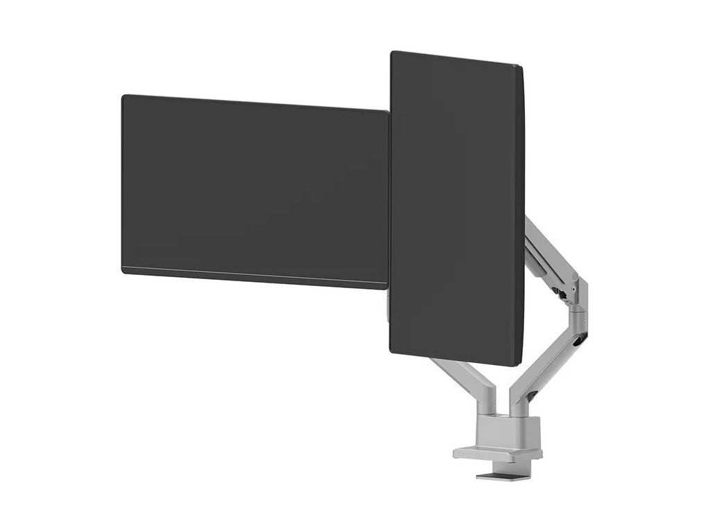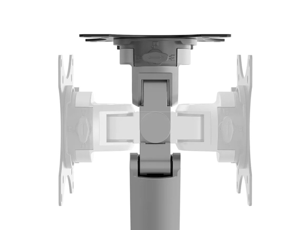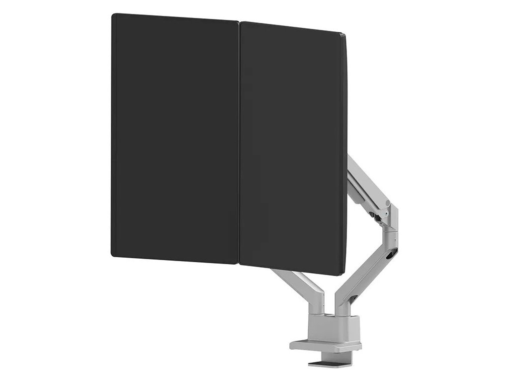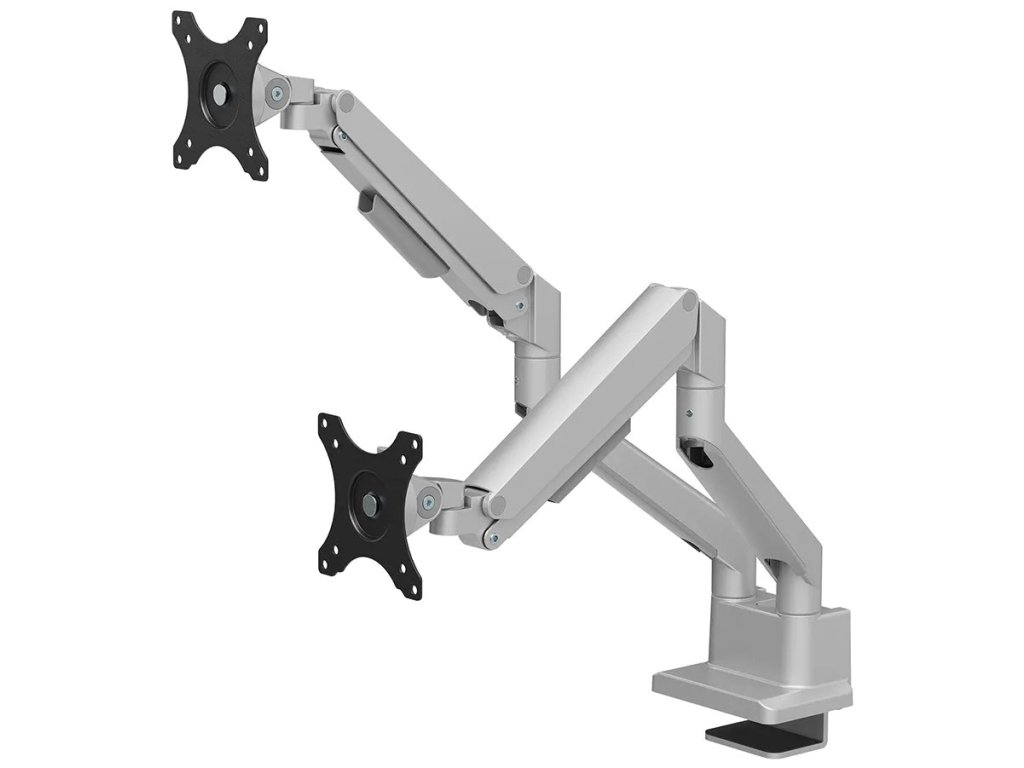 Plně pohyblivý stolní držák pro dva ploché nebo zakřivené monitory s úhlopříčkou 17" až 32" a maximální hmotností 18 kg (2× 9 kg). Všestranná technologie naklápění, otáčení a rotace umožňuje vytvořit optimální pozorovací úhel. Držák má nastavitelnou výšku 21,5–49,5 cm, hloubku 7–52,5 cm a je vhodný pro obrazovky, které odpovídají vzoru otvorů VESA 75 × 75 až 100 × 100 mm. Potěší také systém pro úhledné vedení kabelů. Balení obsahuje stolní svorku i průchodku.