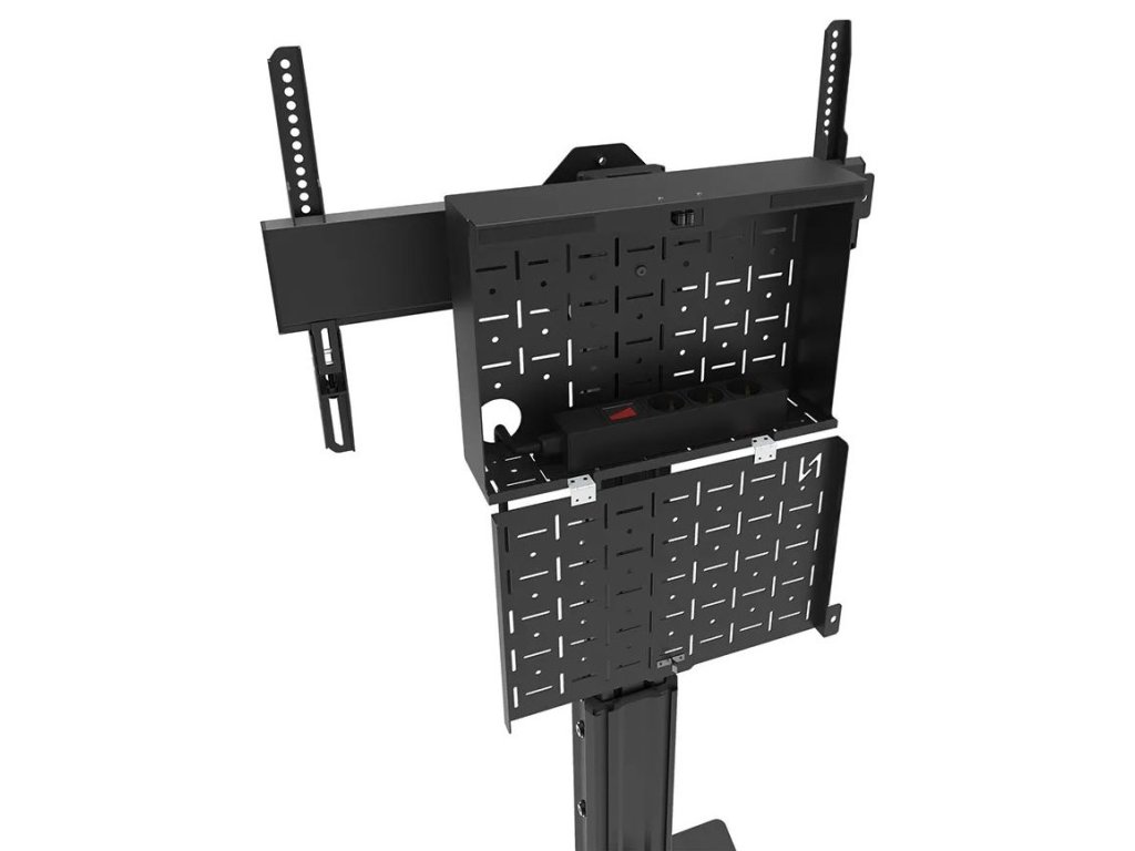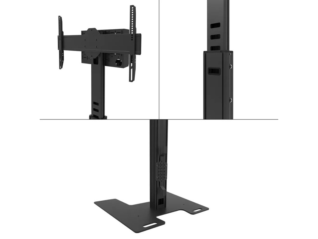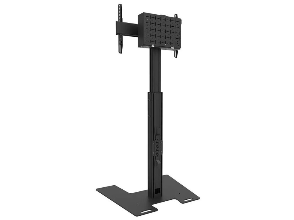 Podlahový stojan pro ploché obrazovky s úhlopříčkou od 37" do 75" a hmotností až 70 kg. Nabízí manuální nastavení výšky (104–157 cm) pro vytvoření optimálního pozorovacího úhlu. Součástí stojanu je také zamykatelný perforovaný box s otvory pro průchod kabelů a montáž příslušenství. Obrazovku lze zabezpečit pomocí visacího zámku (není součástí balení).