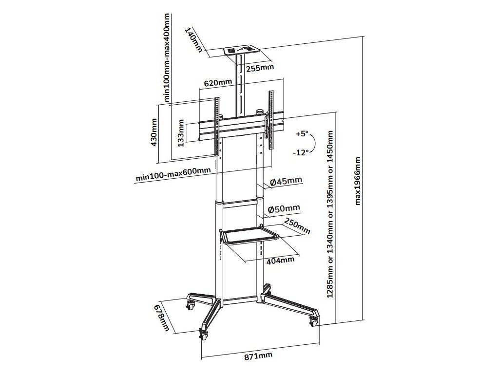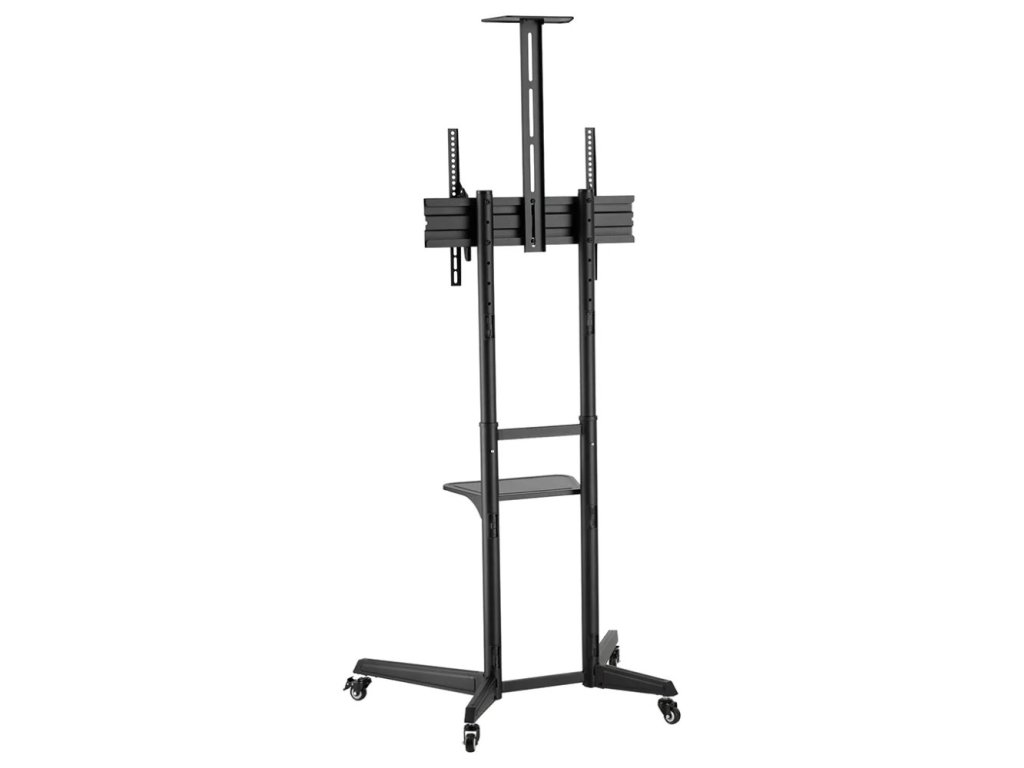 Mobilní podlahový stojan pro ploché obrazovky s úhlopříčkou od 37" do 70" a hmotností až 50 kg. Stojan má 4 výšková nastavení a možnost náklonu (17°) pro vytvoření optimálního pozorovacího úhlu. Navíc obsahuje samostatnou a výškově nastavitelnou polici pro příslušenství.