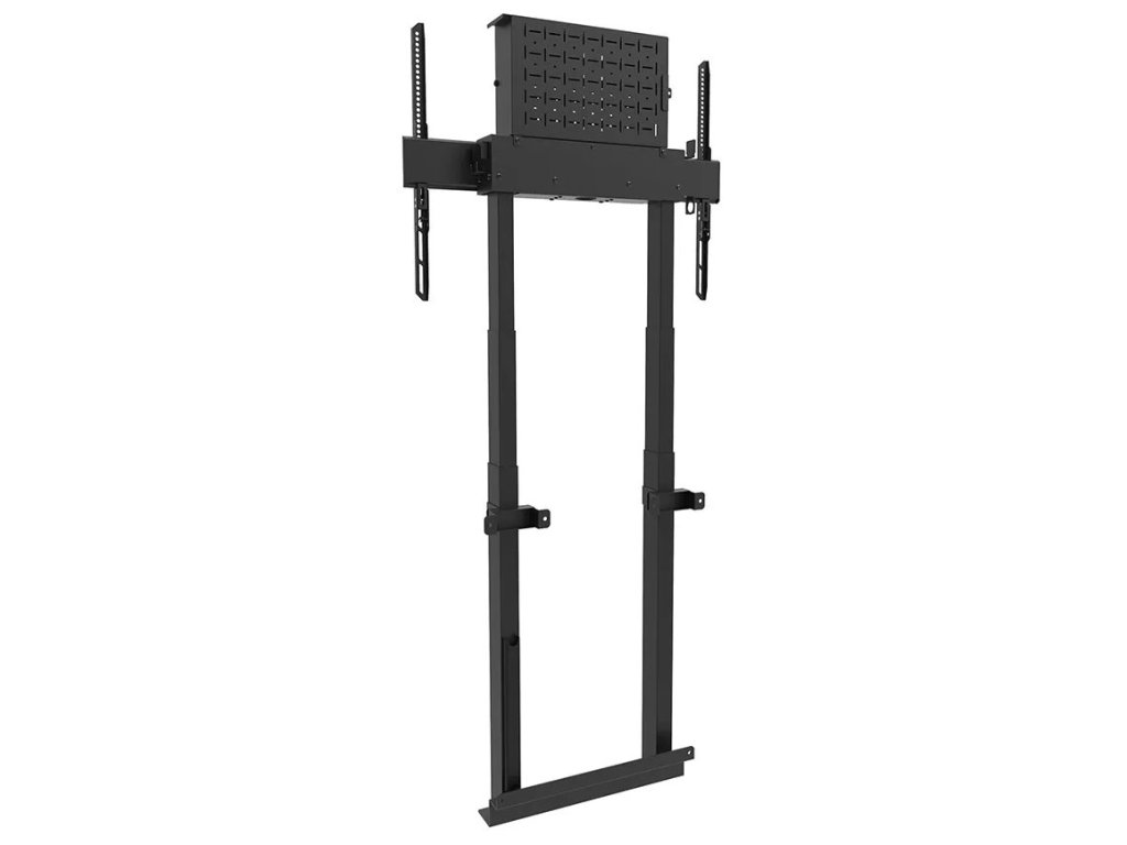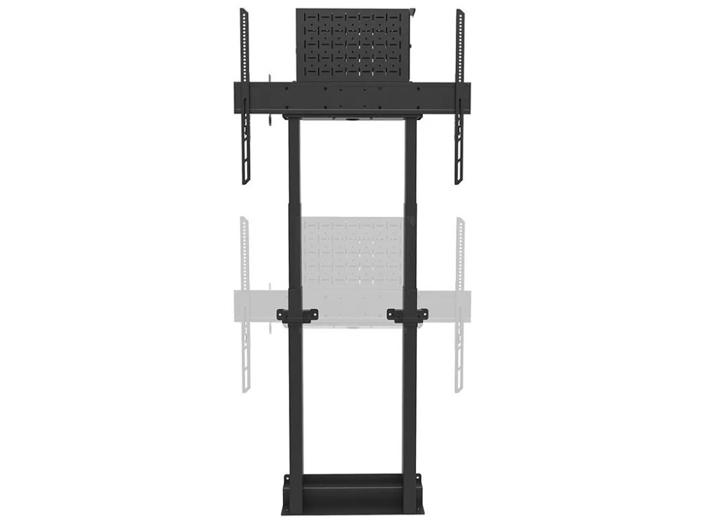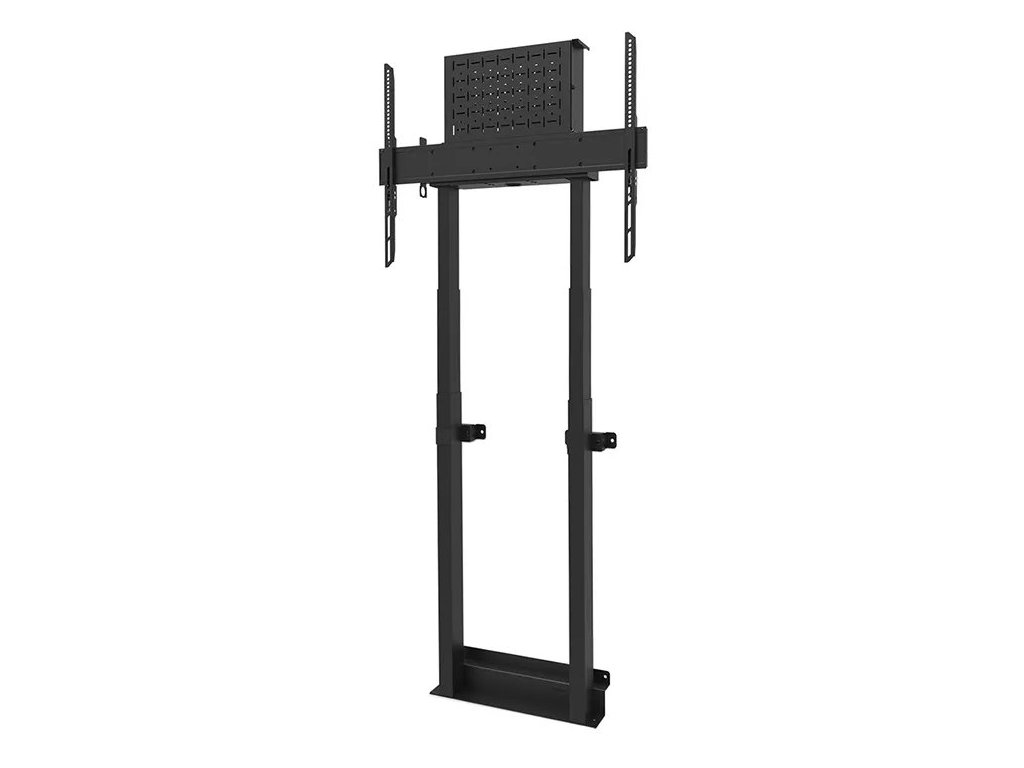 Nástěnný držák pro ploché obrazovky s úhlopříčkou od 37" do 100" a hmotností až 110 kg. Nabízí motorizované nastavení výšky v rozsahu 98 až 163 cm pro vytvoření optimálního pozorovacího úhlu. Podlahová deska s prostorem pro podlahové lišty zajišťuje pevnou a bezpečnou instalaci. Součástí balení je uzamykatelná, větraná přihrádka na hardware s otvorem pro kabely.