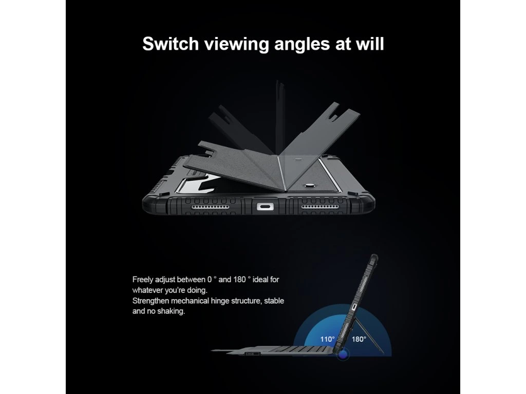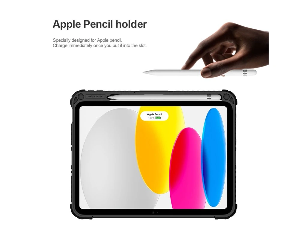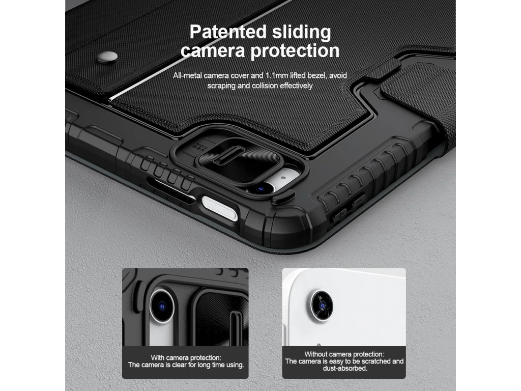 Popis produktu: Nillkin Bumper Combo Keyboard Case je víceúčelový ochranný kryt tabletu s klávesnicí, slotem pro Apple Pencil s automatickým nabíjením a plynule nastavitelným úhlem tabletu. Chcete svůj tablet využívat jako mobilní kancelář, nebo jako náhradu za těžký notebook, nebo Vás prostě jen tablet baví, tak přesně pro Vás je zde ochranný kryt Nillkin Bumper Combo. Kryt Vám nabídne špičkově zpracovanou bezdrátovou klávesnici s nízkým zdvihem, tichými a odolnými spínači a precizní profilací kláves pro to nejpohodlnější psaní. Kryt má integrovaný slot s nabíjením přímo pro Apple Pencil. Můžete ho tak mít vždy s sebou a co je hlavní, bude vždy plně nabitý. O nabíjení právě Apple Pencil a napájení bezdrátové klávesnice se stará vysokokapacitní baterie, kterou v případě potřeby dobijete na 100% za pouhé dvě a půl hodiny. Poskytuje provoz pro klávesnici až na dobu 55 dní. Ani zadní strana tabletu ale není nudná. Nejen že nabízí praktickou opěrku pro tablet s plynulým nastavením úhlu, ale také zde najdete posuvný kryt fotoaparátu. Tablet právě díky tomuto patentovanému posuvnému krytu nemůže už být více ochráněn. A to stále není vše, tablet lze opřít jak klasicky na šířku, tak i na výšku. Ať už pro práci s grafikou, psaní textů nebo čtení knih, vybere si prostě každý. Vlastnosti - ochranný kryt s vestavěnou klávesnicí - přihrádka pro Apple Pencil s nabíjením - baterie pro provoz až na 55 dní - plynulé nastavení úhlu tabletu - posuvný ochranný kryt fotoaparátu - možnost opření tabletu na výšku i šířku