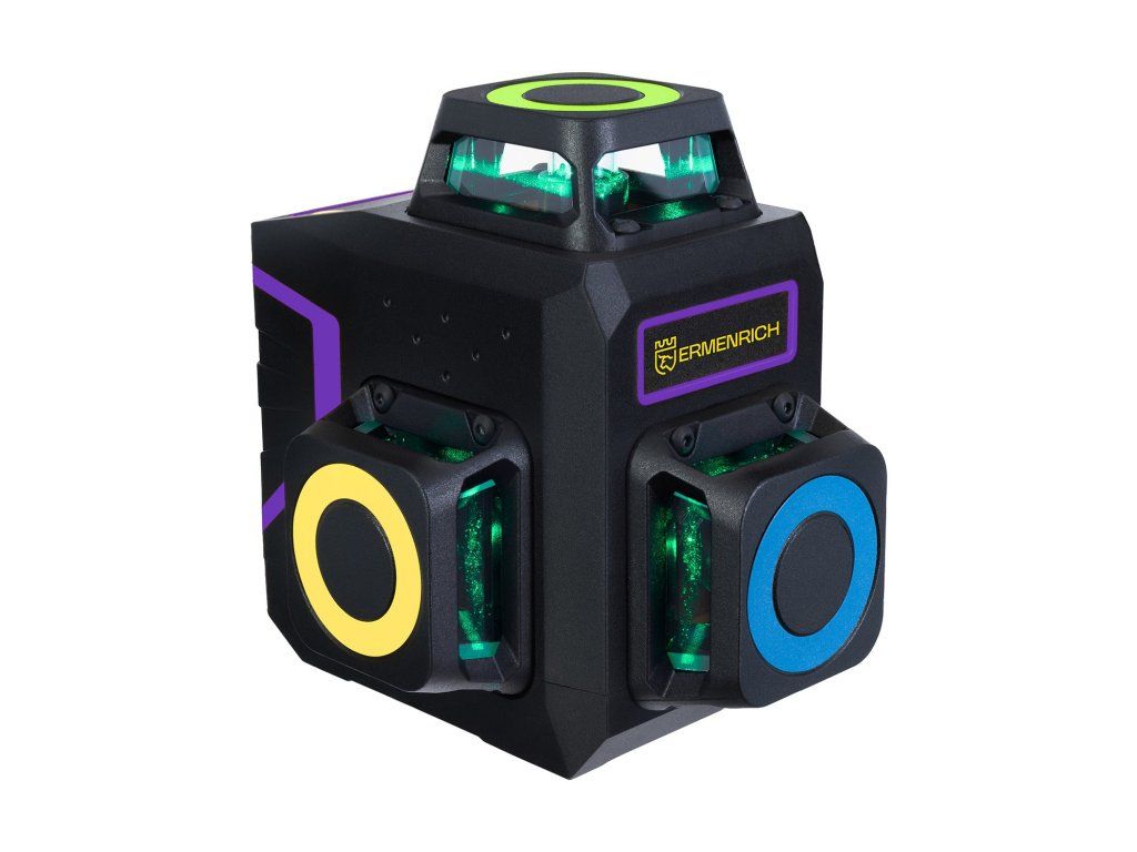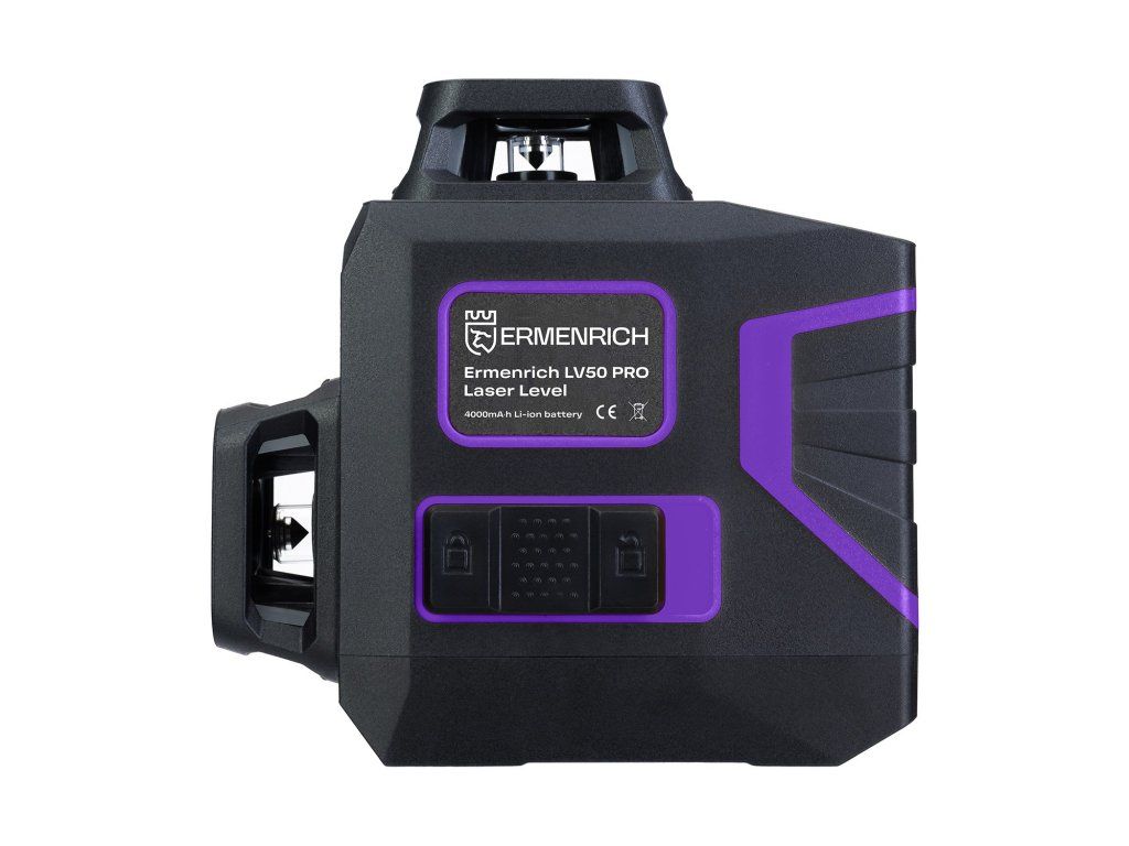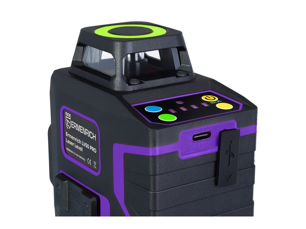 Nivelační přístroj Ermenrich LV50 PRO až 30m, zelený laser, 12 čar, fialový