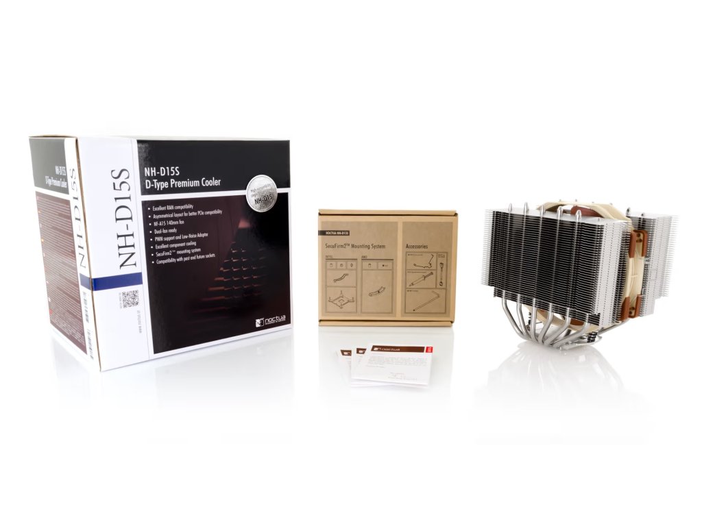 Noctua NH-D15S je prémiový dvouvěžový chladič navržený pro lepší kompatibilitu s PCIe sloty a vysokými paměťovými moduly.