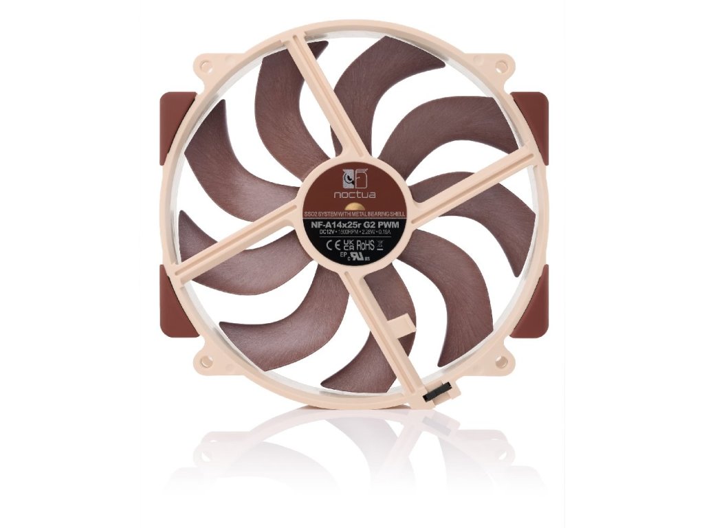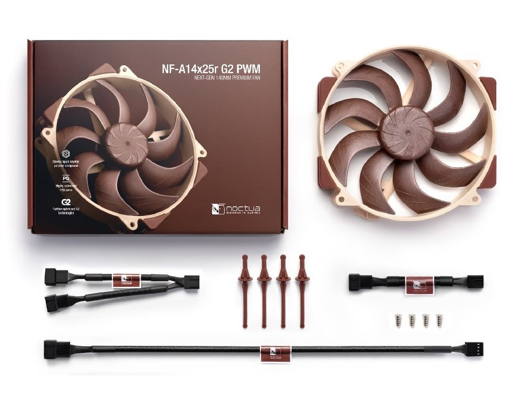 Noctua NF-A14x25R G2 PWM je špičkový ventilátor druhé generace, navržený pro maximální efektivitu a nízkou hlučnost. Díky technologii Sterrox® LCP, aerodynamickým prvkům a ultra těsné vůli lopatek (0,7 mm) poskytuje vynikající výsledky na chladičích CPU.