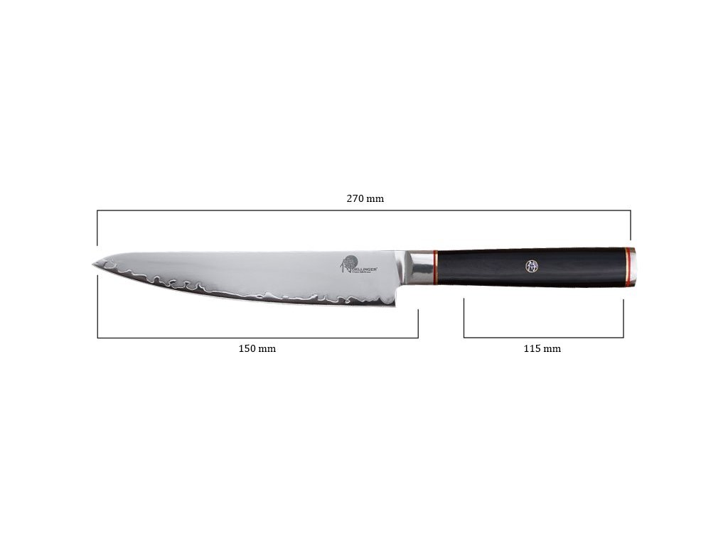 Univerzální nůž Okami od značky Dellinger se stane nepostradatelným pomocníkem každého kuchaře. Využijete ho při krájení ovoce a zeleniny, naporcujete menší kusy masa a sýrů, vykostíte ryby a zpracujete bylinky. Díky svým vlastnostem nahradí velký nůž Chef.