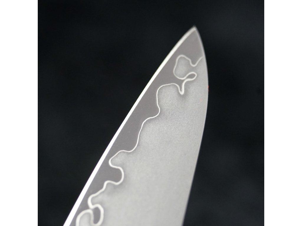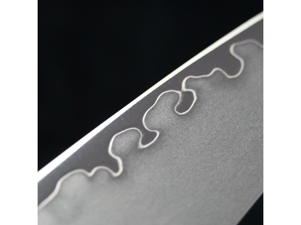 Pořiďte si opravdu kvalitní nůž v japonském stylu. Jeho jádro tvoří 2 vrstvy nerezové oceli rozdílných tvrdostí. Díky těmto vrstvám je nůž mimořádně odolný. Čepel v matném odstínu (takzvaný stonewashed) zdobí úchvatné broušení. Tato úprava skryje škrábance. Jelikož je nůž mimořádně ostrý, zachovají si krájené potraviny svůj tvar a strukturu.