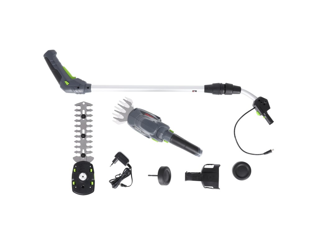 Součástí balení jsou 2 nástavce – na sekání trávy a na řezání keřů. Systém rychlé výměny čepele vám umožní použití jiných nástavců, aniž byste k tomu potřebovali nářadí či maziva. Pomocí teleskopické násady dosáhnete i do vzdálenějších či hůře dostupných míst.