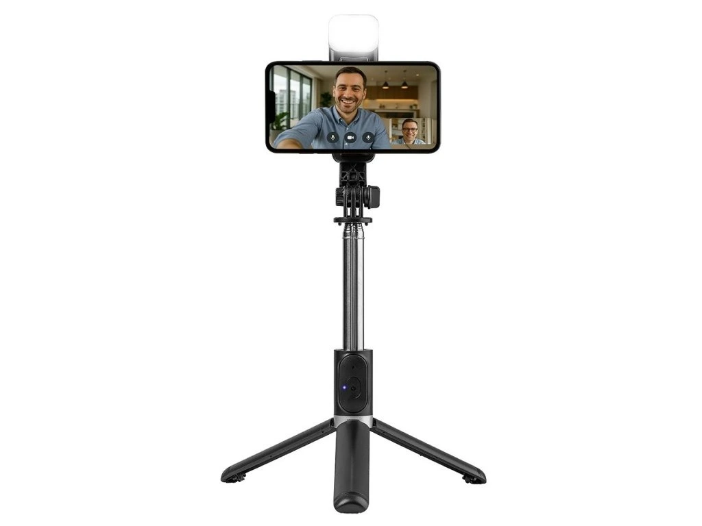 LED Světlo: Ano (s nastavitelným jasem) Kombinace selfie tyče a tripodu: Ano Odnímatelný Bluetoth ovladač: Ano Skládací nožky: Ano