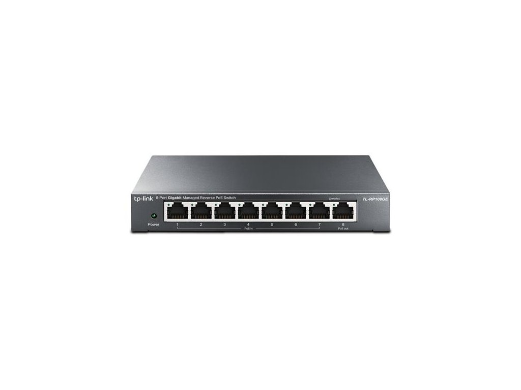Omada 8-Port Gigabit Easy Smart Reverse PoE Switch PORT: 7× Gigabit Passive PoE In Ports, 1× Gigabit Passive PoE Out Por