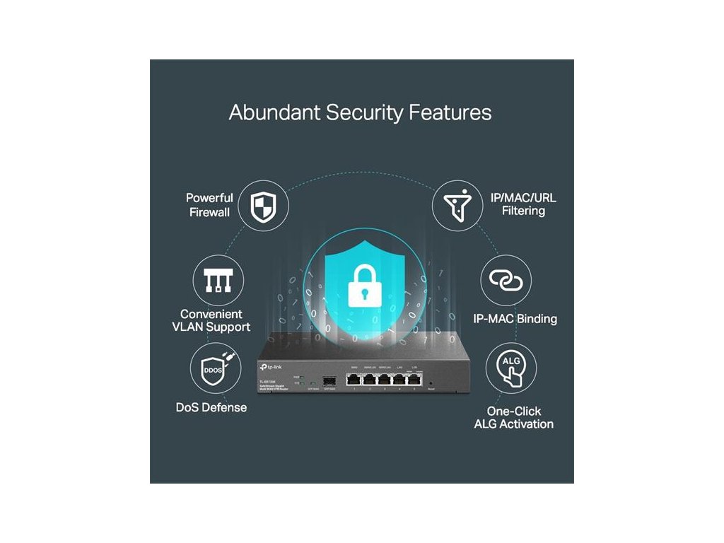 Omada Gigabit VPN Router PORT: 1× Gigabit SFP WAN/LAN Port, 1× Gigabit RJ45 WAN Port, 4× Gigabit RJ45 LAN port,1x USB 3