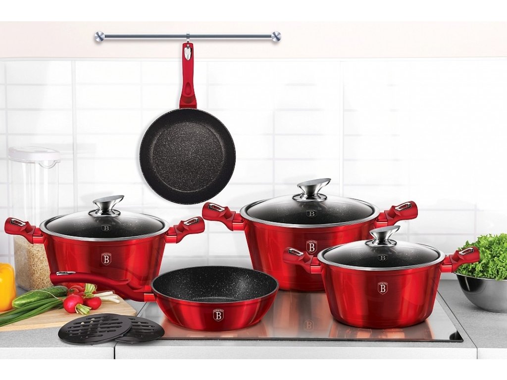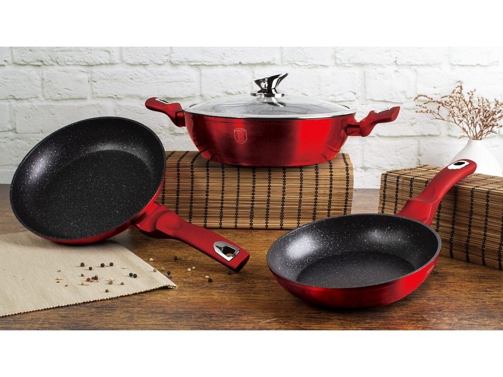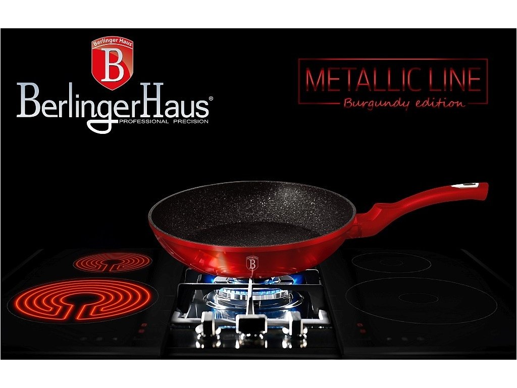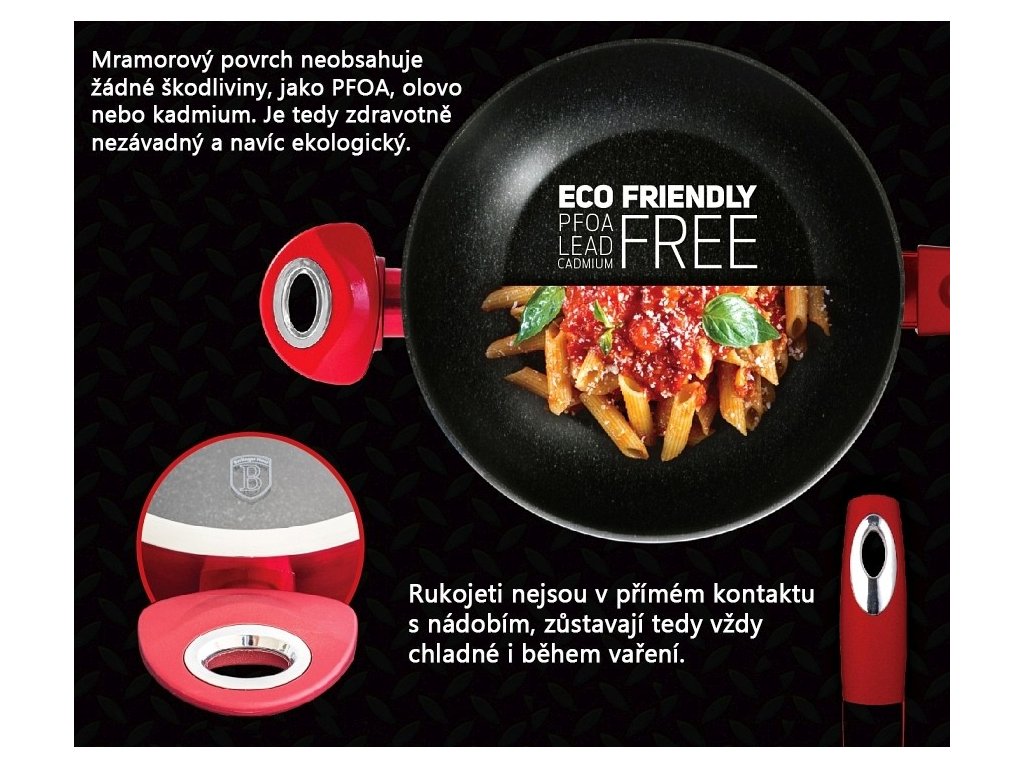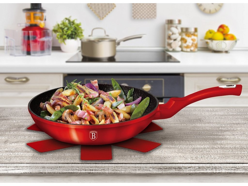 Pánev Berlingerhaus BH-1252 Metallic Line červená s mramorovým povrchem 24 cm červená