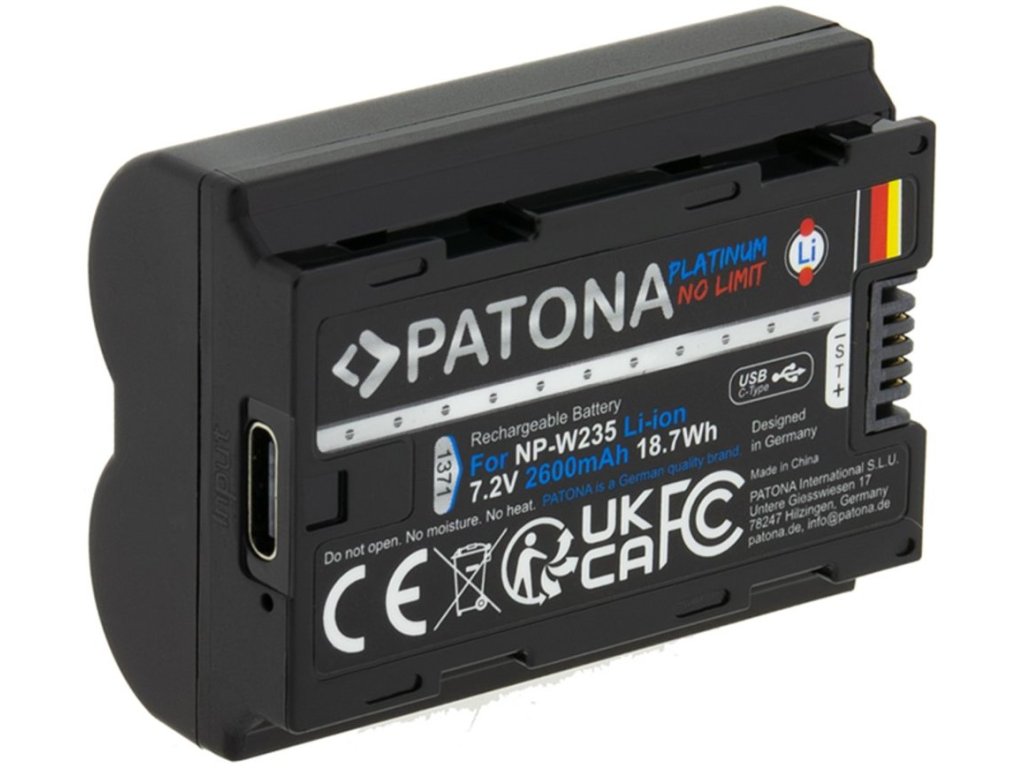 PATONA baterie pro foto Fuji NP-W235 2600mAh Li-Ion Platinum USB-C nabíjení