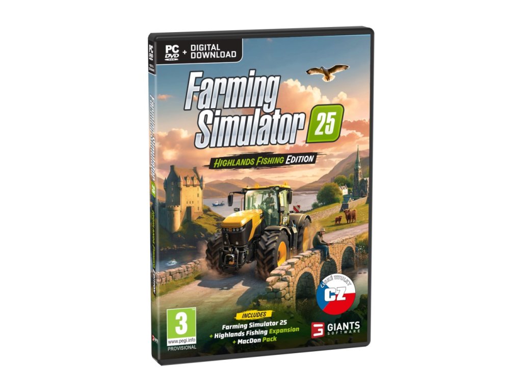 Farming Simulator 25: Highlands Fishing Edition obsahuje jak úspěšnou hlavní hru, tak rozšíření Highlands Fishing. Užijte si 26 plodin, 4 mapy, více než 400 strojů, přes 150 autentických značek a vodohospodářství nad rámec zemědělství, lesnictví a chovu zvířat.