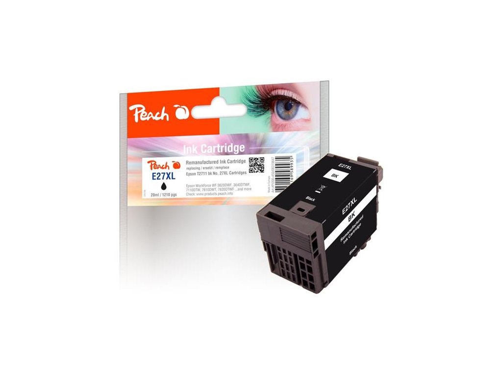 Peach Epson Inkoustová náplň No.27XL T2711, REM, T2711, 20ml, kompatibilní - černá
