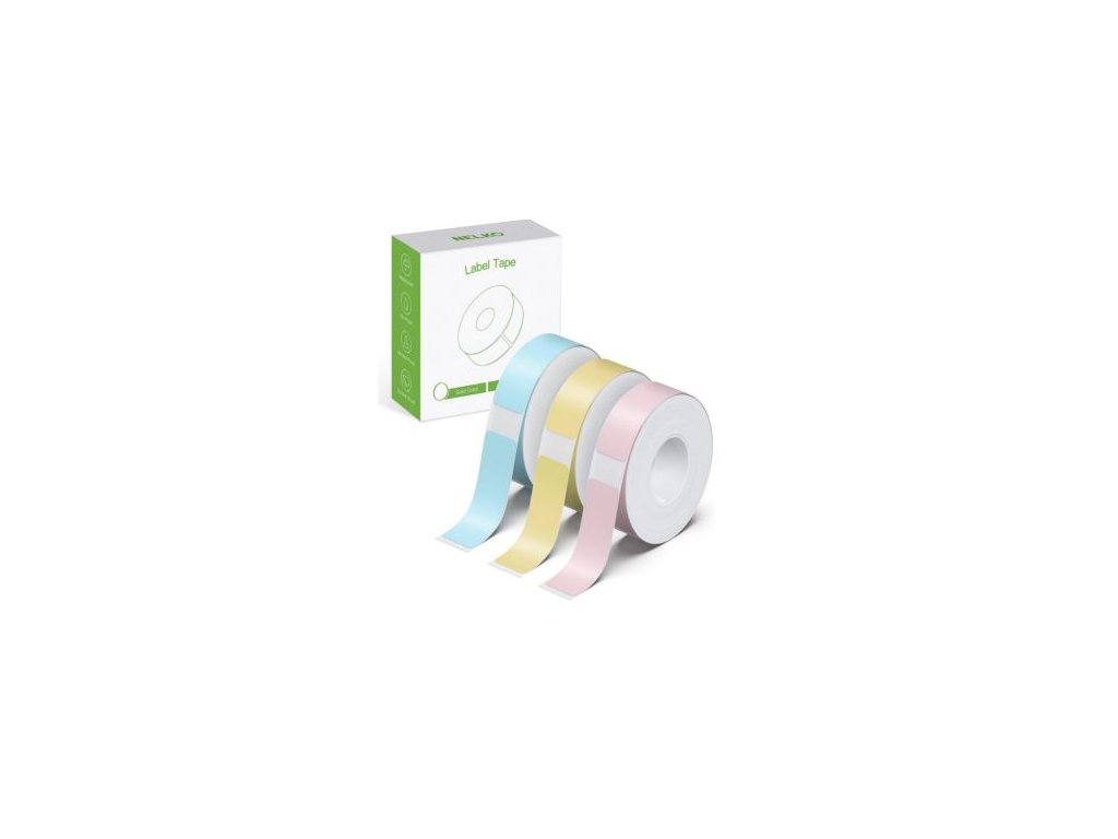 Etiketová role do štítkovače Peach PE110, žlutý/růžový/modrý podklad, 3x180 štítků v roli, velikost štítků 12x40mm, termální syntetický papír